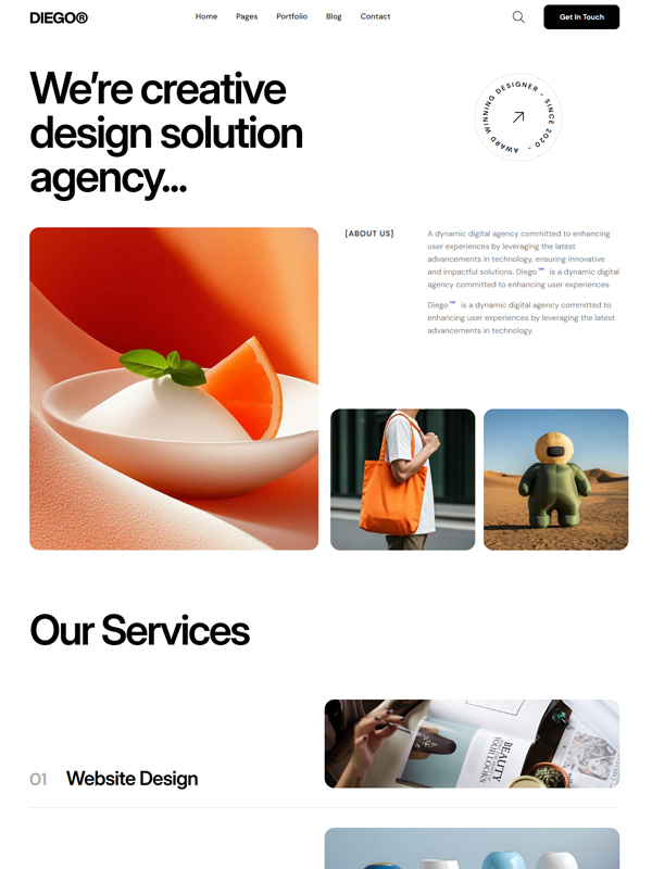 a unique visual style. Diego is ideal for architectural portfolios and interior design services.