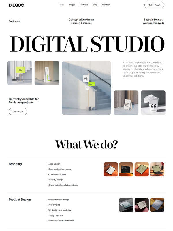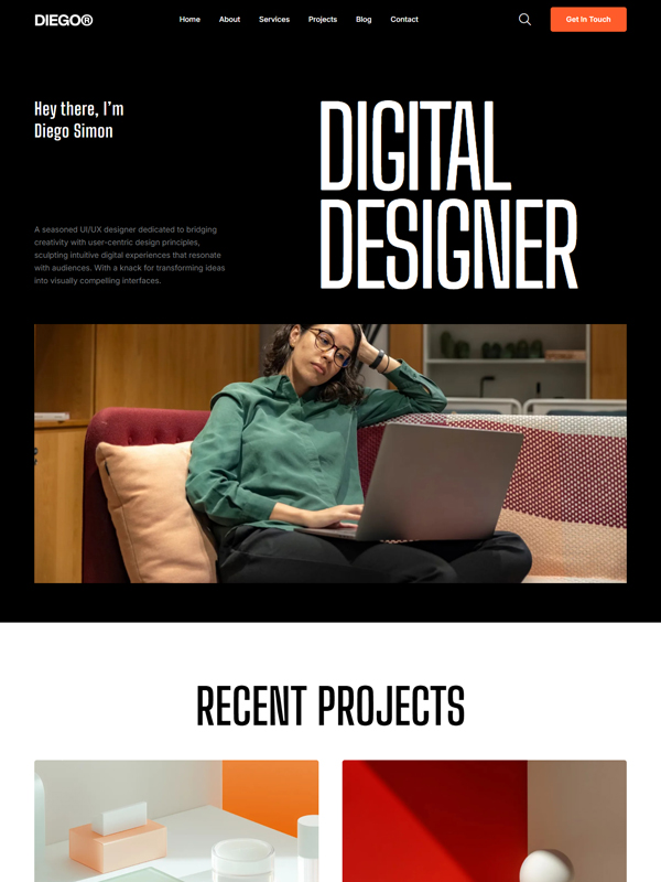a unique visual style. Diego is ideal for architectural portfolios and interior design services.